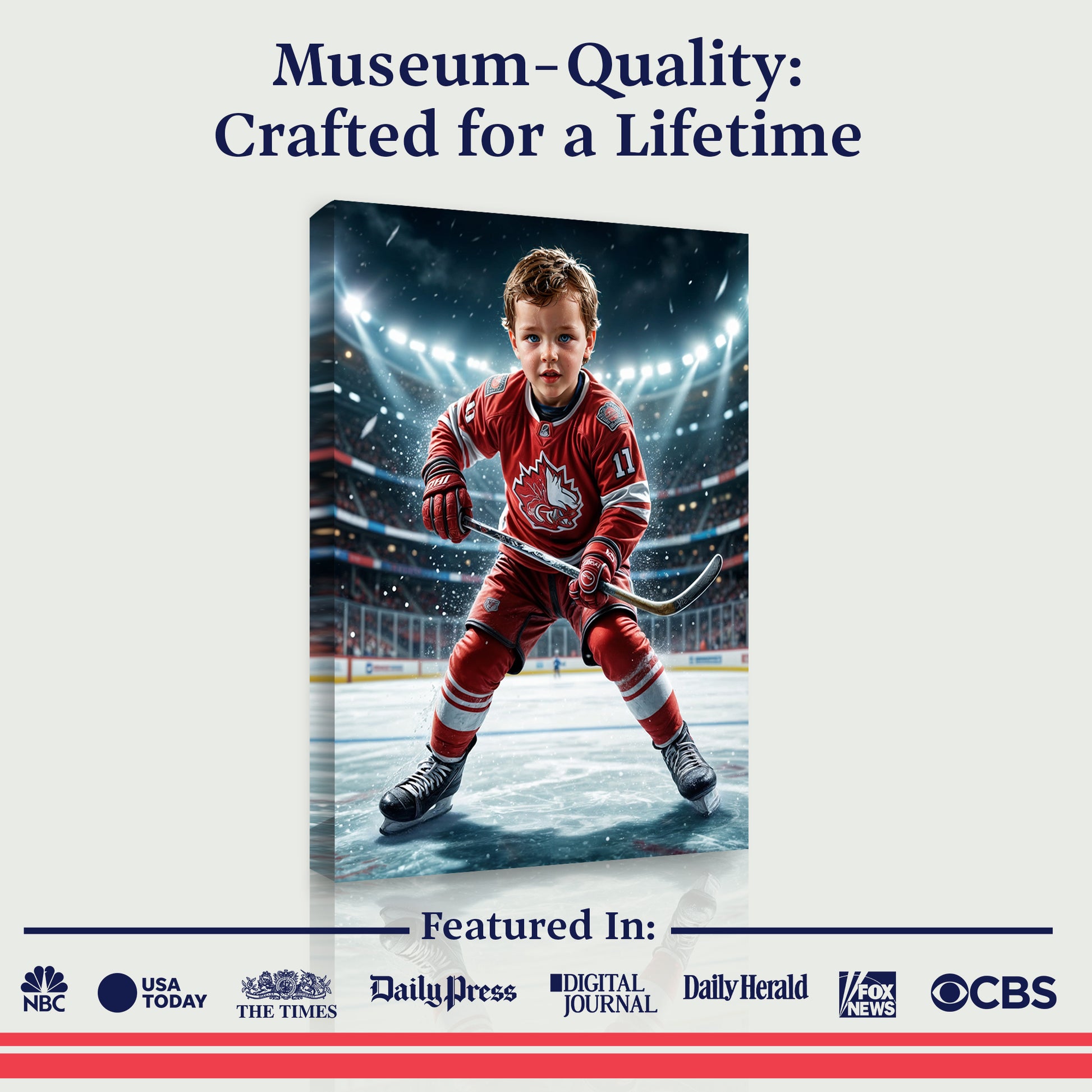 Unsere unglaubliche KI erstellt jedes Portrait individuell für dein Kind und wir drucken es anschließend auf einer wunderschönen Leinwand. Schließe dich über 150.000 Familien an, die ihre Kinder wie Helden fühlen lassen!