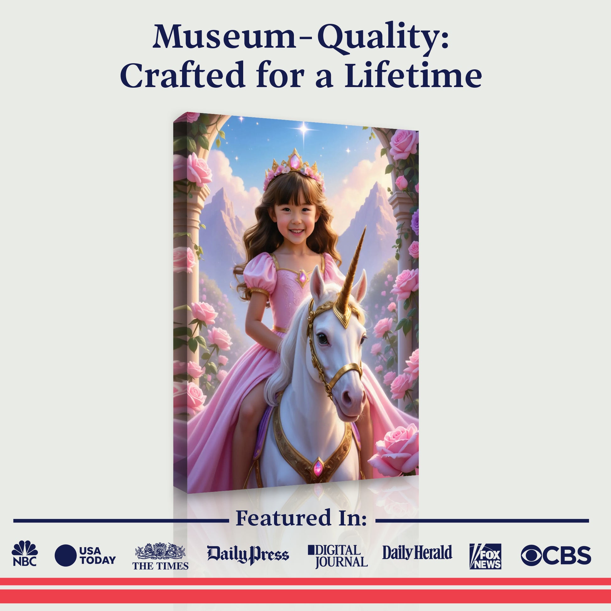 Unsere unglaubliche KI erstellt jedes Portrait individuell für dein Kind und wir drucken es anschließend auf einer wunderschönen Leinwand. Schließe dich über 150.000 Familien an, die ihre Kinder wie Helden fühlen lassen!