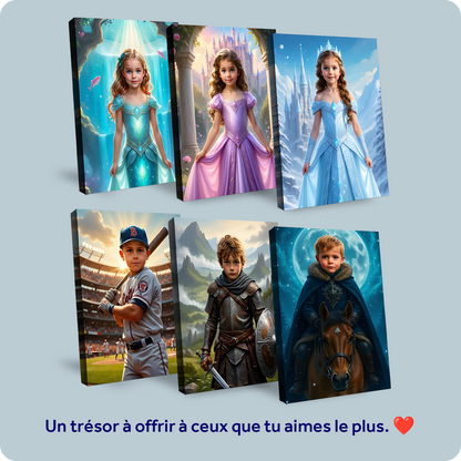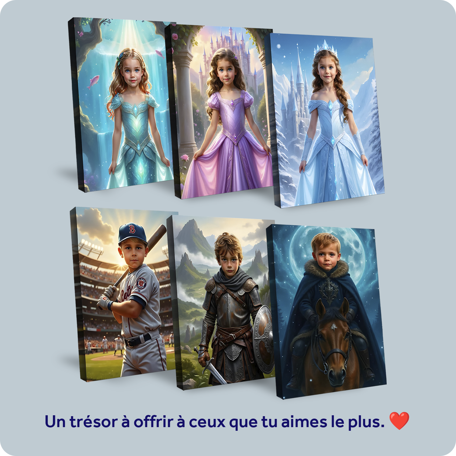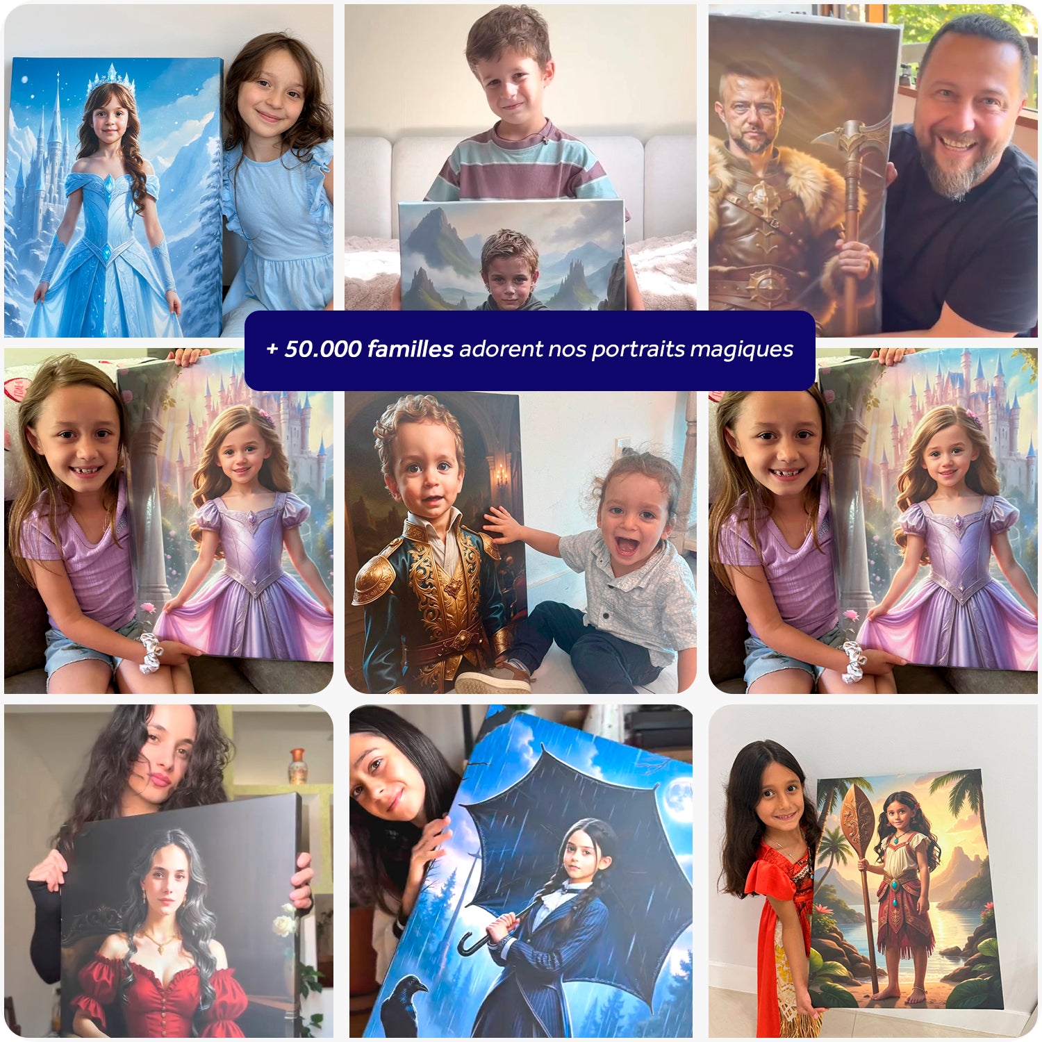 Offrez un portrait qui transforme vos proches en roi, reine ou personnage d’exception. Chaque création est réalisée à partir de leur photo et sublimée sur une toile élégante.