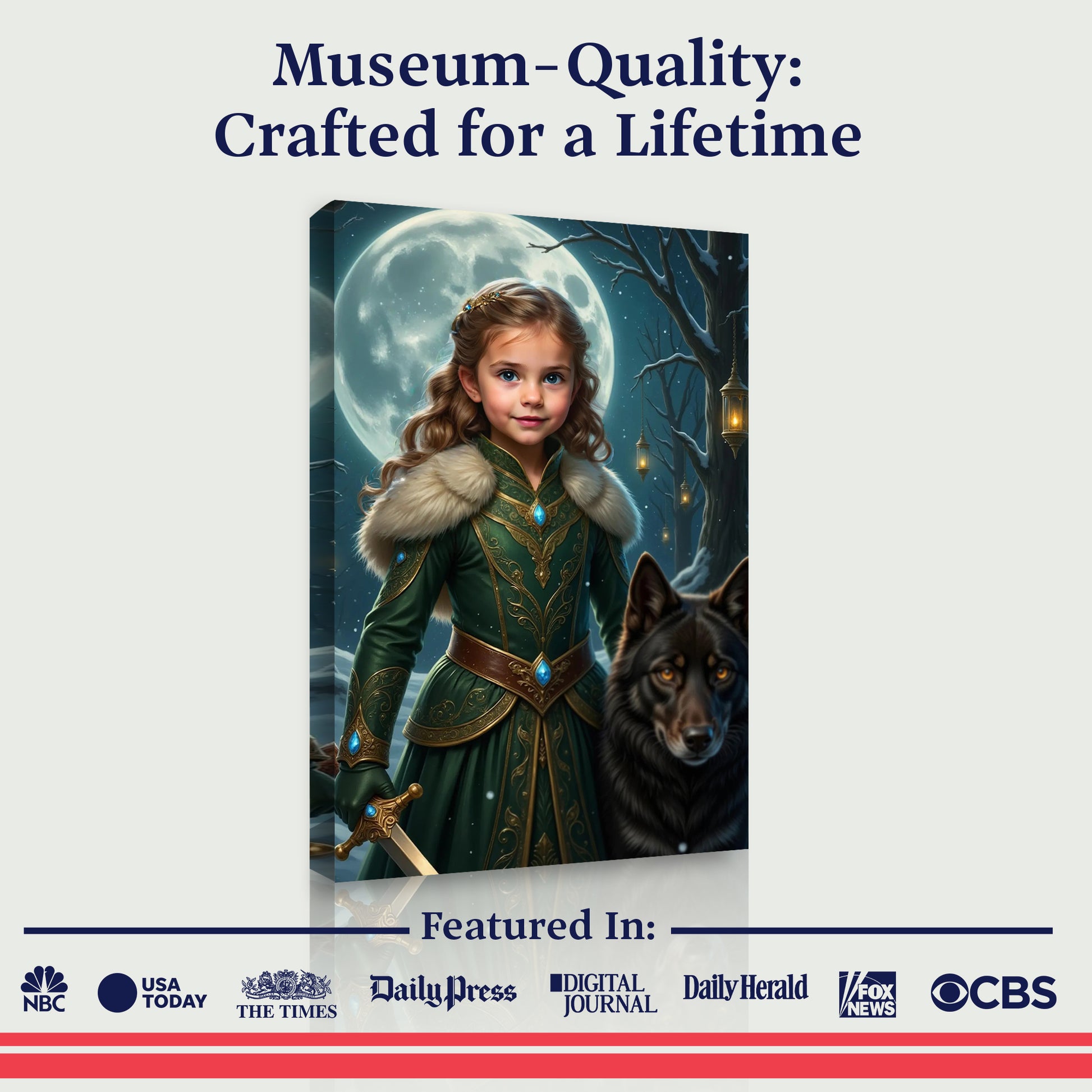 Unsere unglaubliche KI erstellt jedes Portrait individuell für dein Kind und wir drucken es anschließend auf einer wunderschönen Leinwand. Schließe dich über 150.000 Familien an, die ihre Kinder wie Helden fühlen lassen!