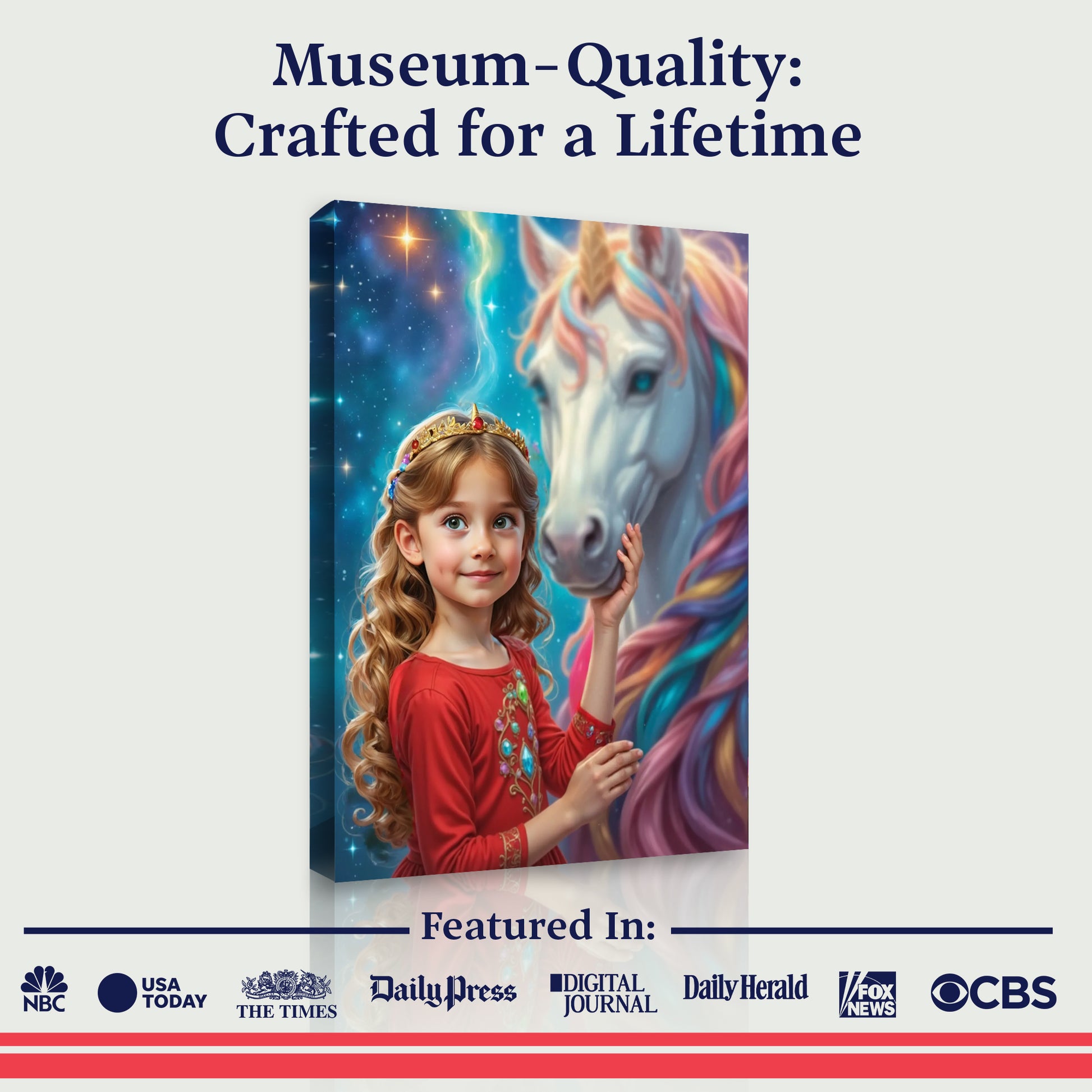Our incredible AI creates each portrait just for them, then we print it on beautiful canvas. Join over 150,000 families who've made their kids and adults alike feel like stars!