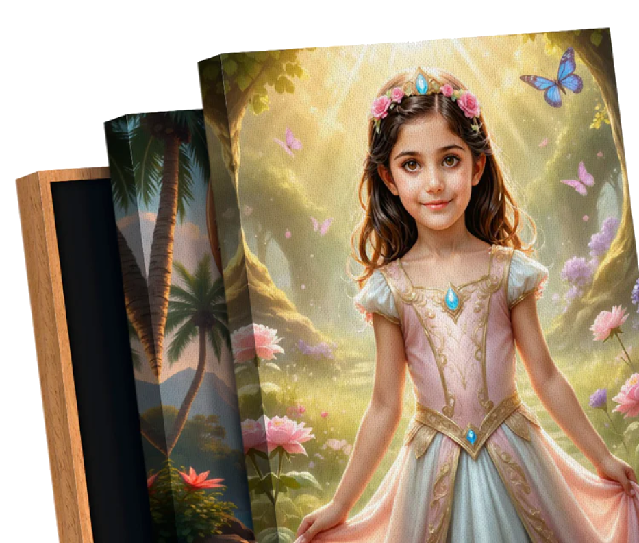 Our incredible AI creates each portrait just for them, then we print it on beautiful canvas. Join over 150,000 families who've made their kids feel like stars!