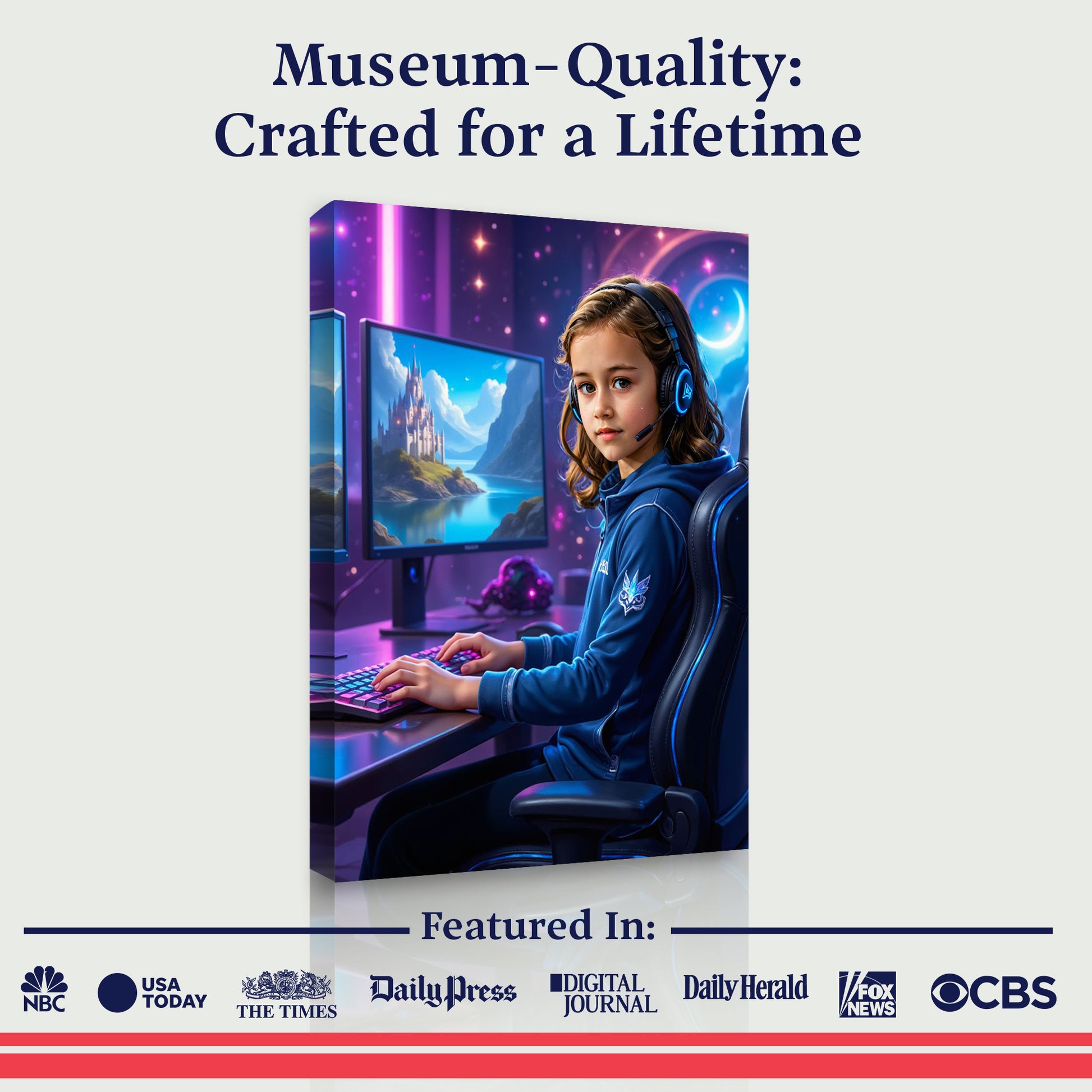 Our incredible AI creates each portrait just for them, then we print it on beautiful canvas. Join over 150,000 families who've made their kids feel like stars!