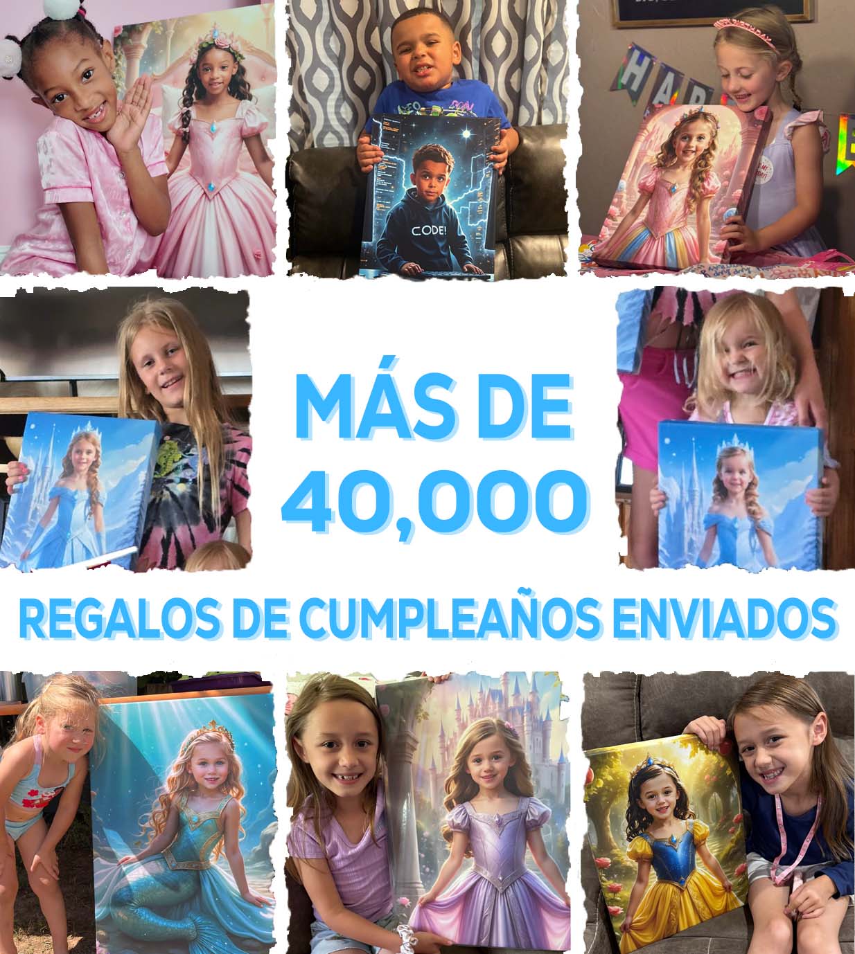 Nuestra increíble IA crea cada retrato específicamente para ellos, y lo imprimimos en un lienzo de la más alta calidad. ¡Únete a más de 150,000 familias que han hecho sentir a sus hijos como estrellas!