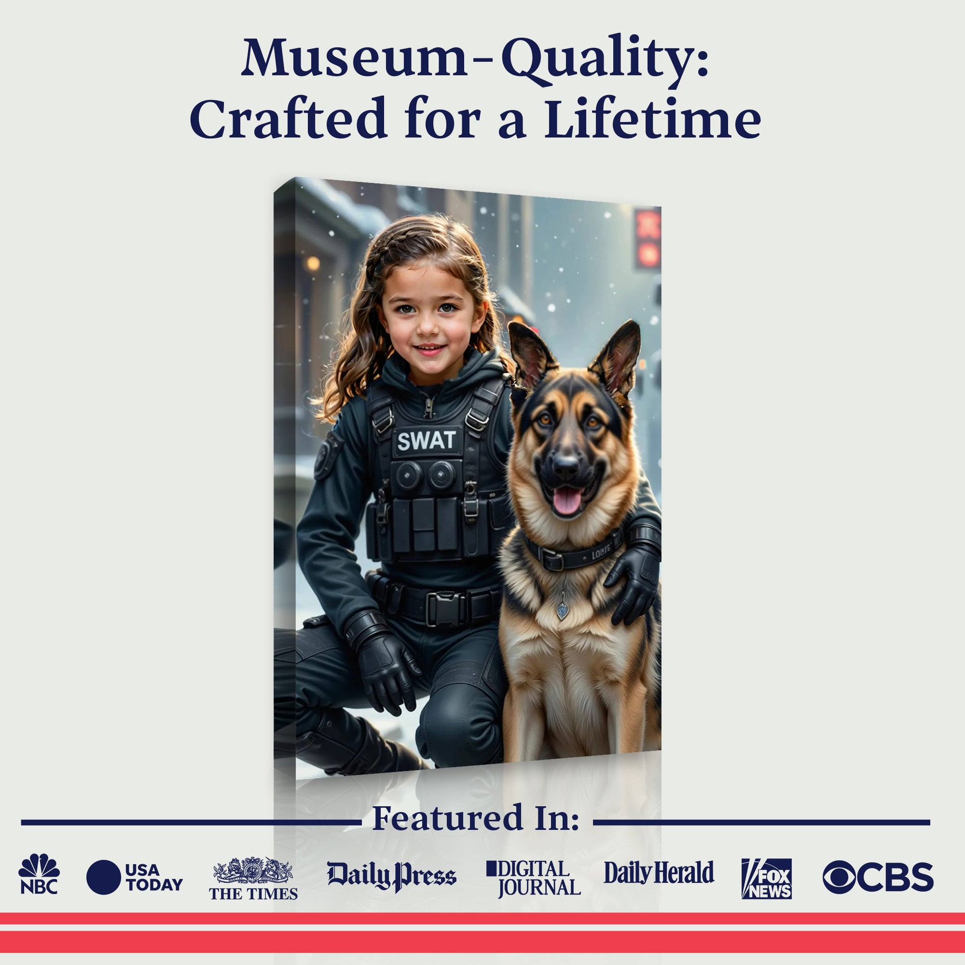 Nuestros hermosos retratos se imprimen en Estados Unidos en lienzos premium 100% de algodón, del mismo tipo usado por artistas profesionales, con tinta permanente. ¡Garantizamos que dura para siempre!
