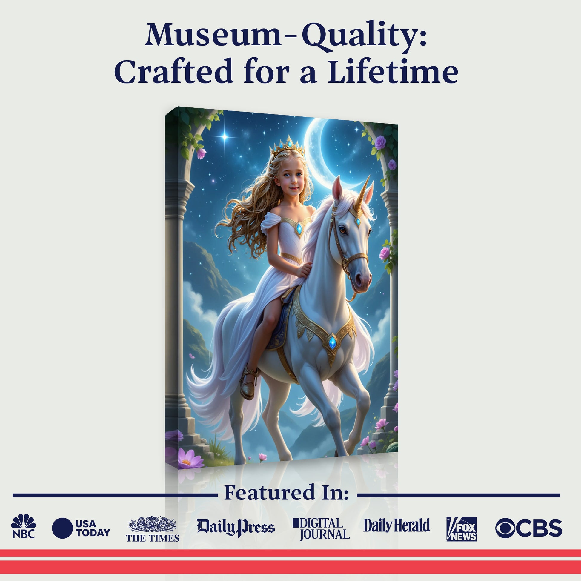 Nuestra increíble IA crea cada retrato específicamente para ellos, y lo imprimimos en un lienzo de la más alta calidad. ¡Únete a más de 150,000 familias que han hecho sentir a sus hijos como estrellas!