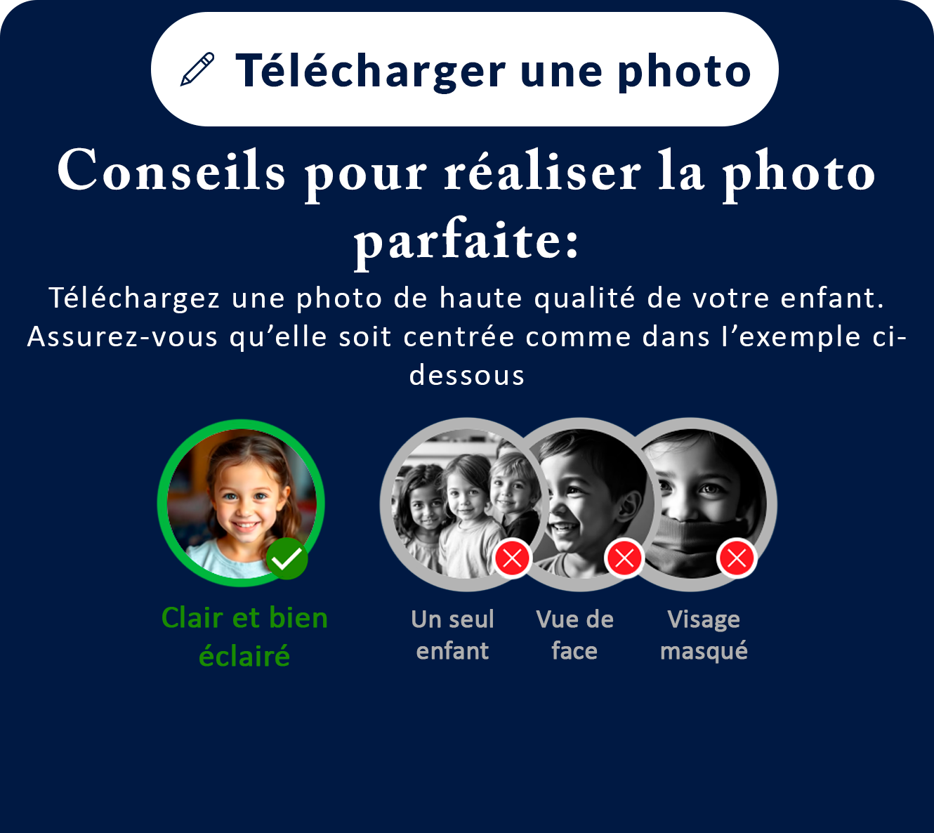2️⃣ Carica una foto del tuo bambino—assicurati che sia chiara e che si veda bene il viso. 📷