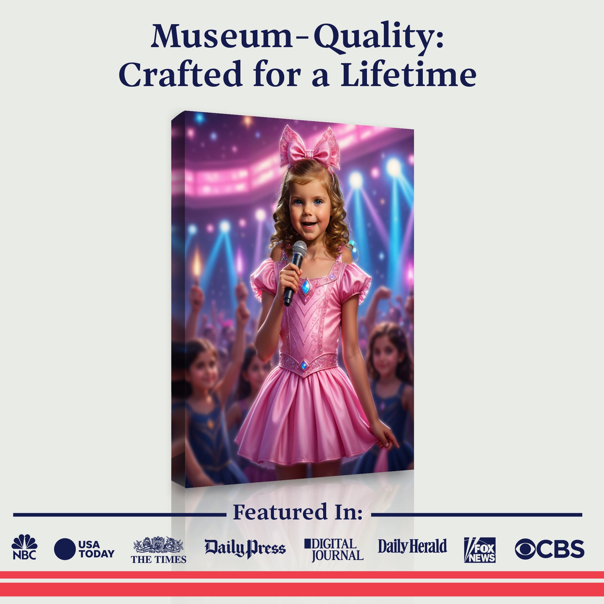 Notre intelligence artificielle réalise chaque création juste pour eux, avant de l’imprimer sur une toile d’exception. Plus de 150 000 familles ont déjà fait briller leurs petits comme de vraies vedettes !
